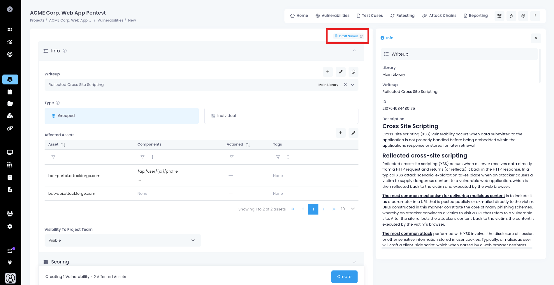 Never lose your work again! The coveted ability to have drafts of Vulnerabilities is now available in AttackForge!